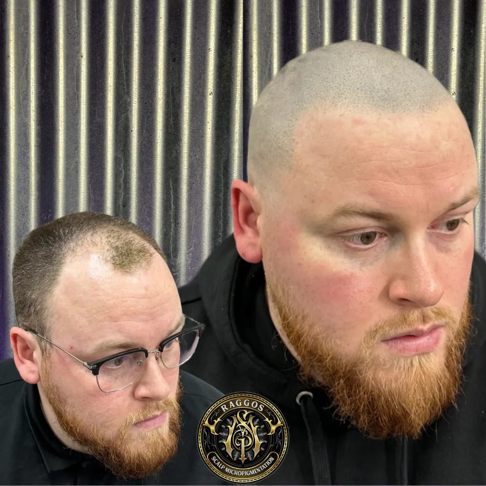 Welcome to raggos smp I’m raggodan, I’ve spent over half my life as a barber, and my experience with hair has played a huge role in developing my talent for the art of Scalp Micropigmentation—also known as a hair tattoo.